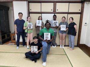 5 students from the USA first experienced Calligraphy.  Everyone wrote their favorite Kanji with good concentration and focus.